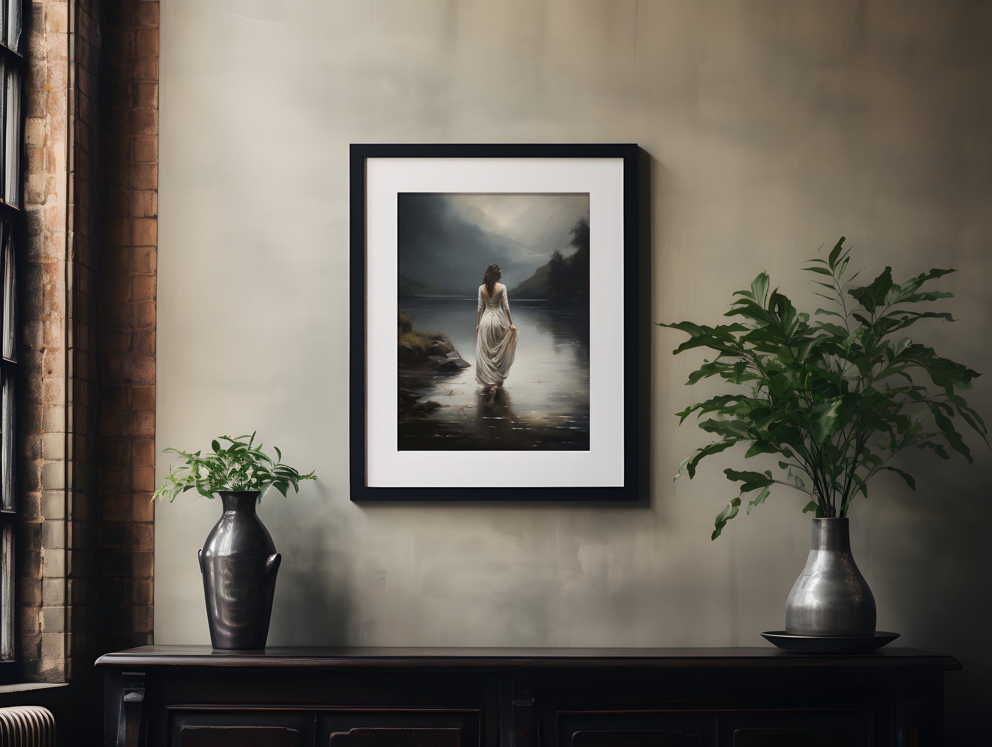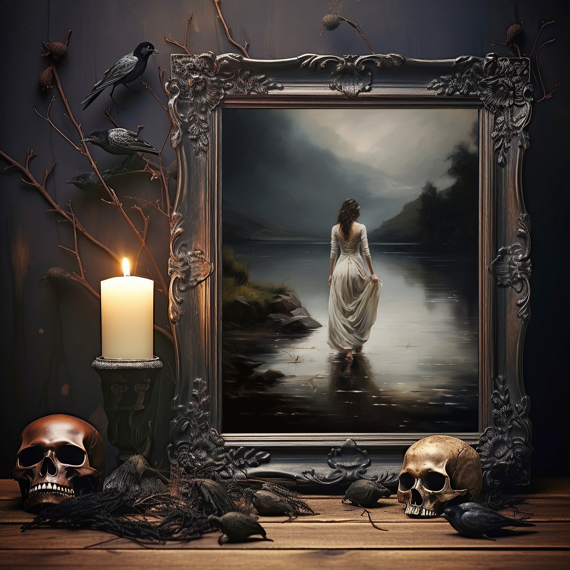 Walking Into The Lake - Dark Academia Print, Moody Victorian Wall Art, Dark Decor Aesthetic, Dark Cottagecore, Gothic Prints
